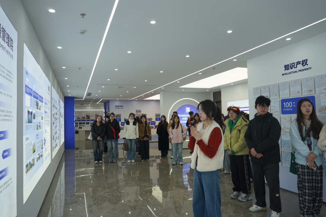 這場研學(xué)在水院展廳拉開序幕。在講解員的引導(dǎo)下,研學(xué)團通過豐富的圖文資料,在展廳沉浸式了解我院的發(fā)展歷程、成果業(yè)績、企業(yè)文化,全方位感知我院在涉水產(chǎn)業(yè)、科技創(chuàng)新、團隊建設(shè)等領(lǐng)域的綜合實力與發(fā)展成果。每一塊展板都在訴說著寧波院人砥礪前行的故事,讓同學(xué)們對水利行業(yè)有了更直觀、更深刻的認識。