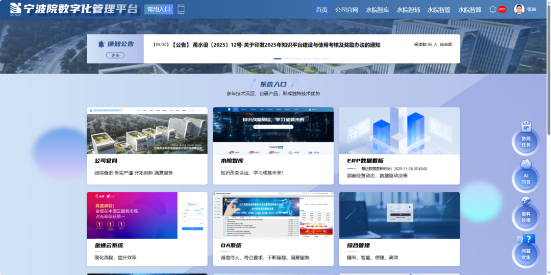 作為我院智慧水利研究院咨詢與解決方案部總監(jiān),張焱及其團(tuán)隊(duì)身處業(yè)務(wù)鏈條最前端,主導(dǎo)項(xiàng)目售前咨詢,精準(zhǔn)對(duì)接客戶需求,是我院在智慧水利領(lǐng)域的一線開(kāi)拓者。從臺(tái)風(fēng)防御技術(shù)研發(fā)到省河湖庫(kù)數(shù)字化管理,從水利工程信息化設(shè)計(jì)到數(shù)智水院產(chǎn)品推廣,他始終緊貼政策前沿與業(yè)務(wù)一線,以專業(yè)為錨、以創(chuàng)新為帆,在江河湖海的治理藍(lán)圖上書(shū)寫智慧答卷。